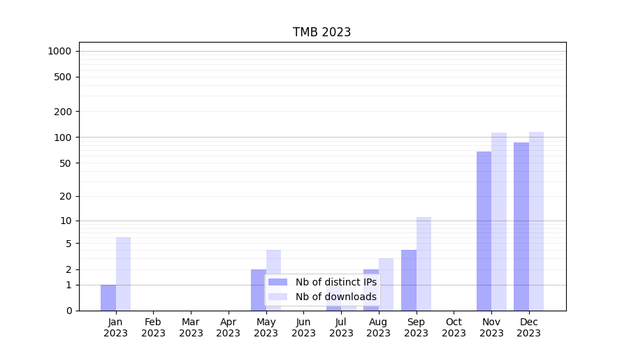 | Month | Nb of distinct IPs | Nb of downloads |