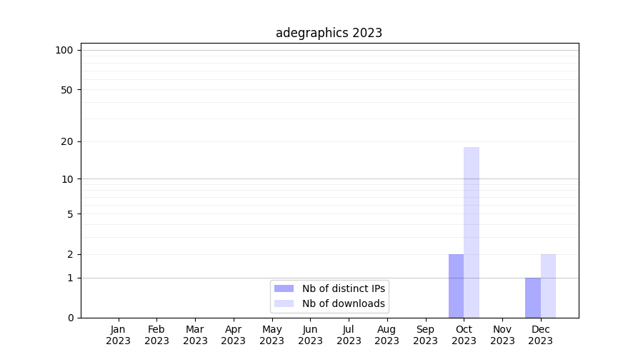 Number of downloads for workflow package adegraphics, year by year, from 2025 back to 2015 (years with no downloads are omitted):