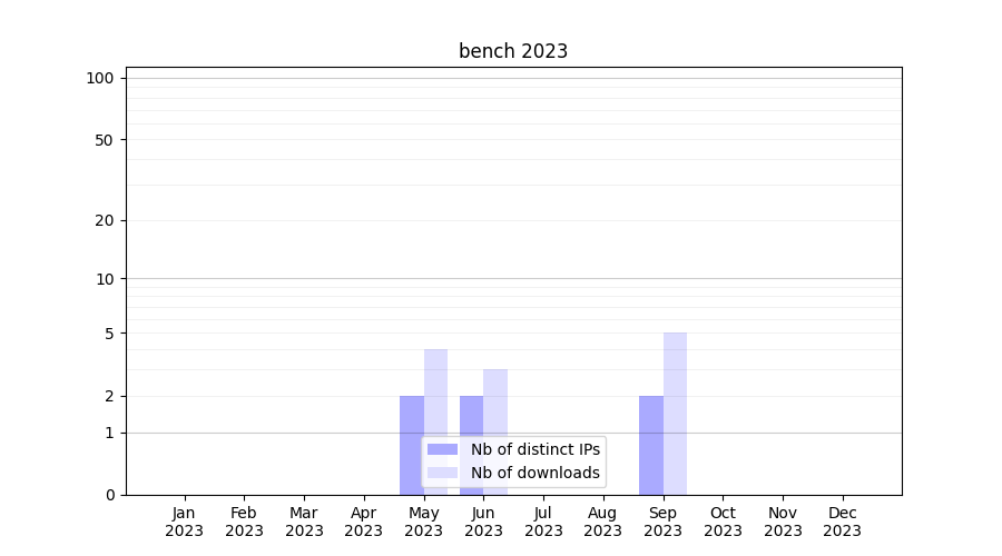 Number of downloads for workflow package bench, year by year, from 2025 back to 2015 (years with no downloads are omitted):