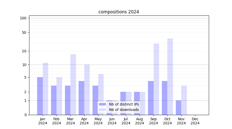 Number of downloads for workflow package compositions, year by year, from 2025 back to 2015 (years with no downloads are omitted):