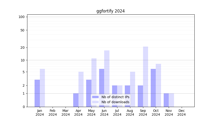 Number of downloads for workflow package ggfortify, year by year, from 2025 back to 2015 (years with no downloads are omitted):