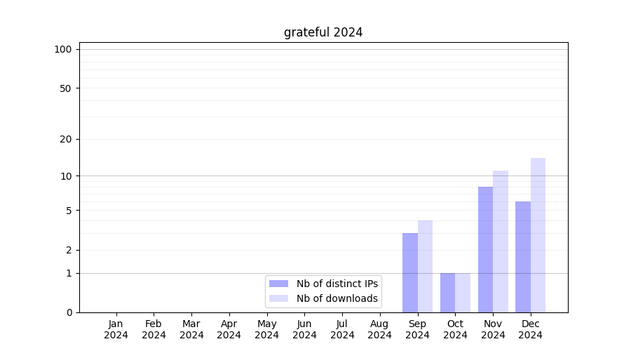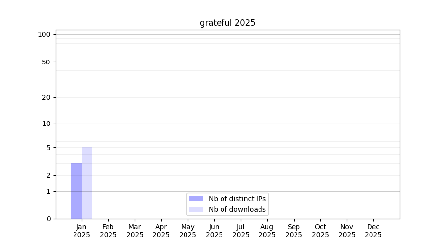 Number of downloads for workflow package grateful, year by year, from 2025 back to 2015 (years with no downloads are omitted):