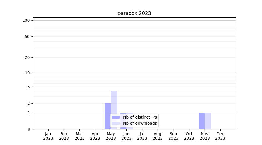 Number of downloads for workflow package paradox, year by year, from 2025 back to 2015 (years with no downloads are omitted):