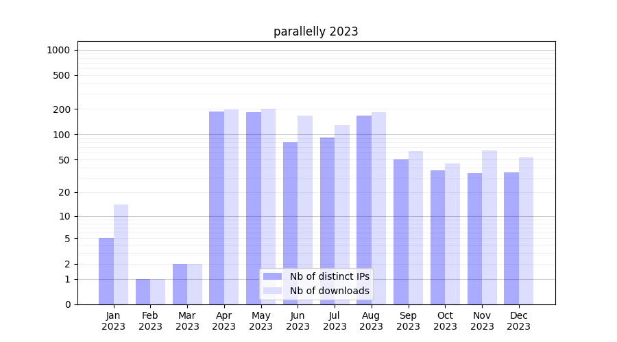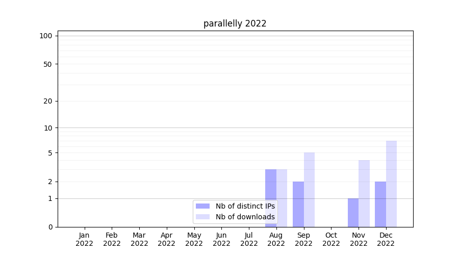 Number of downloads for workflow package parallelly, year by year, from 2025 back to 2015 (years with no downloads are omitted):