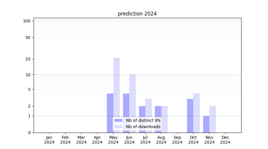 Number of downloads for workflow package prediction, year by year, from 2025 back to 2015 (years with no downloads are omitted):