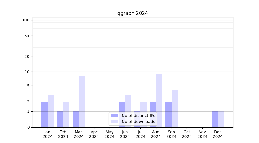 Number of downloads for workflow package qgraph, year by year, from 2025 back to 2015 (years with no downloads are omitted):