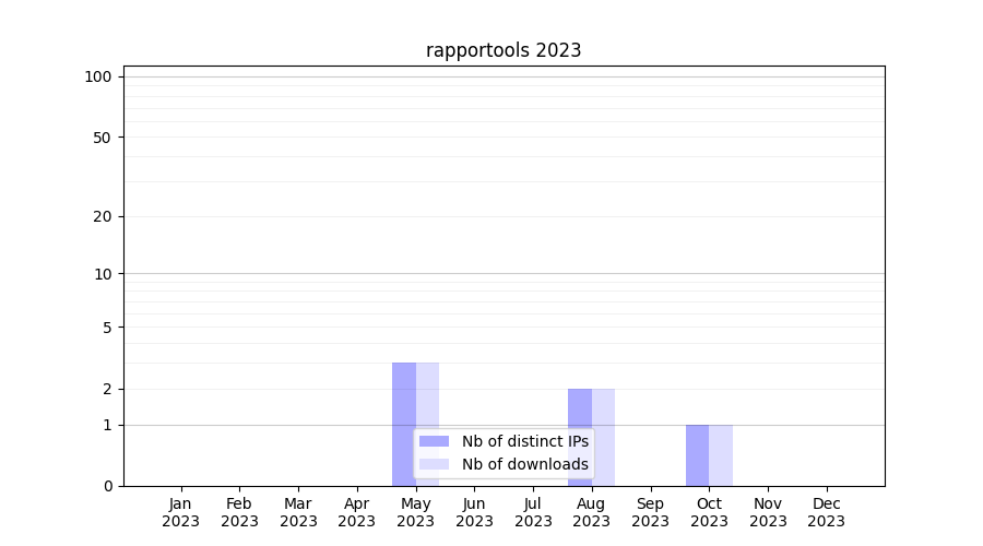 Number of downloads for workflow package rapportools, year by year, from 2025 back to 2015 (years with no downloads are omitted):