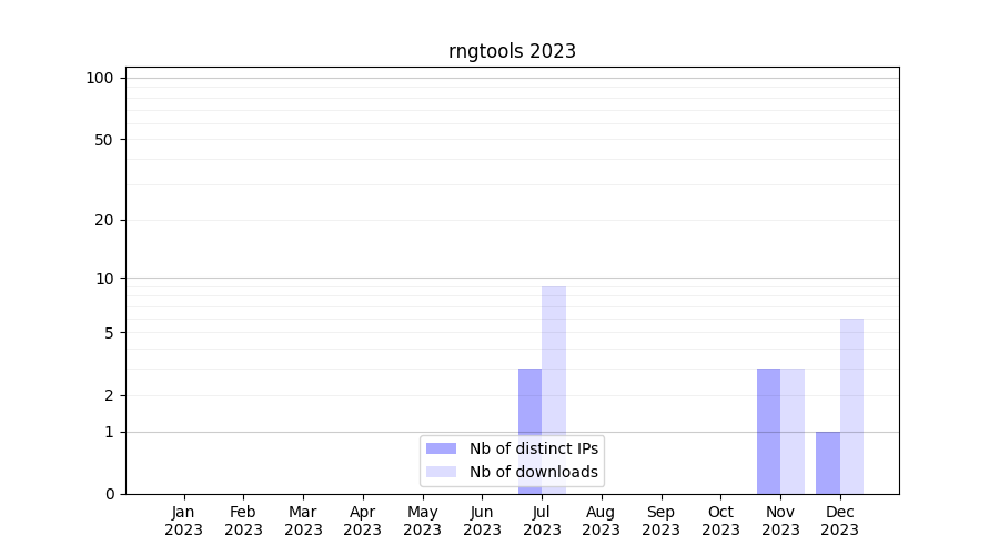Number of downloads for workflow package rngtools, year by year, from 2025 back to 2015 (years with no downloads are omitted):