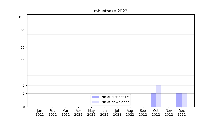 Number of downloads for workflow package robustbase, year by year, from 2025 back to 2015 (years with no downloads are omitted):