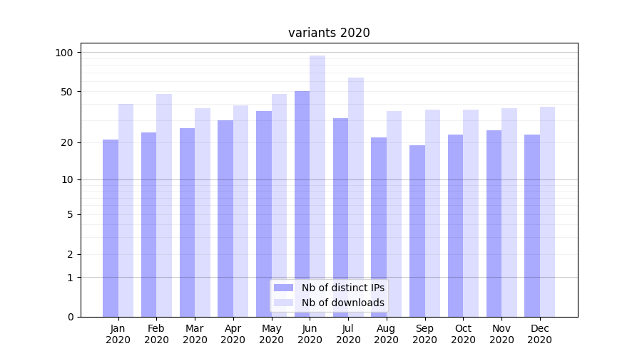 | Month | Nb of distinct IPs | Nb of downloads |