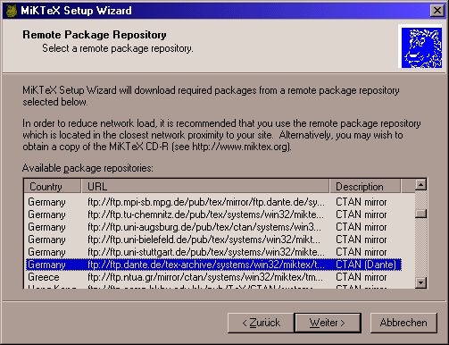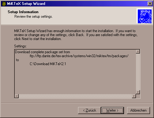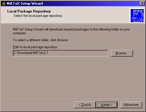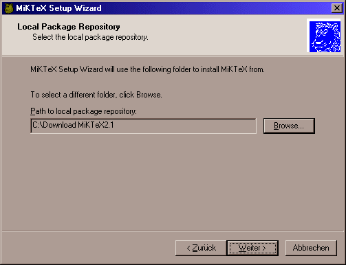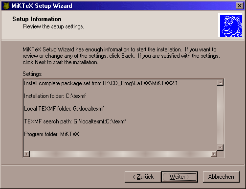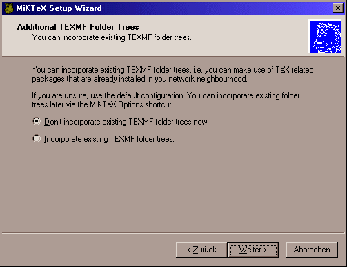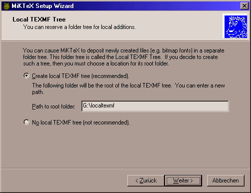 - "Weiter >" anklicken und der lokale texmf-Ordner kann