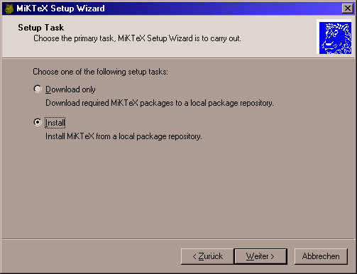 Bevor die Installation gestartet wird, sollte ein Ordner localtexmf