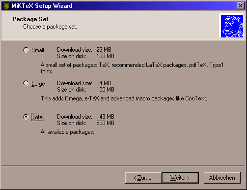 - Je nach Bedarf auswählen, welches Paket heruntergeladen werden soll und