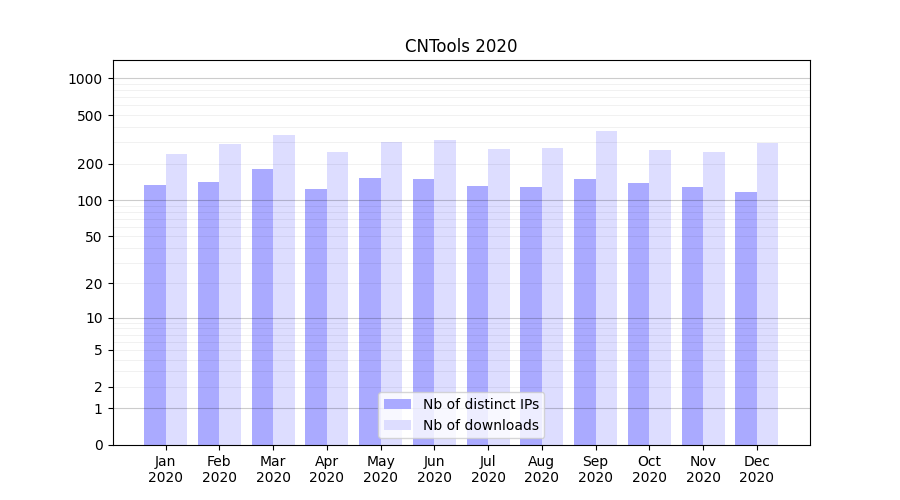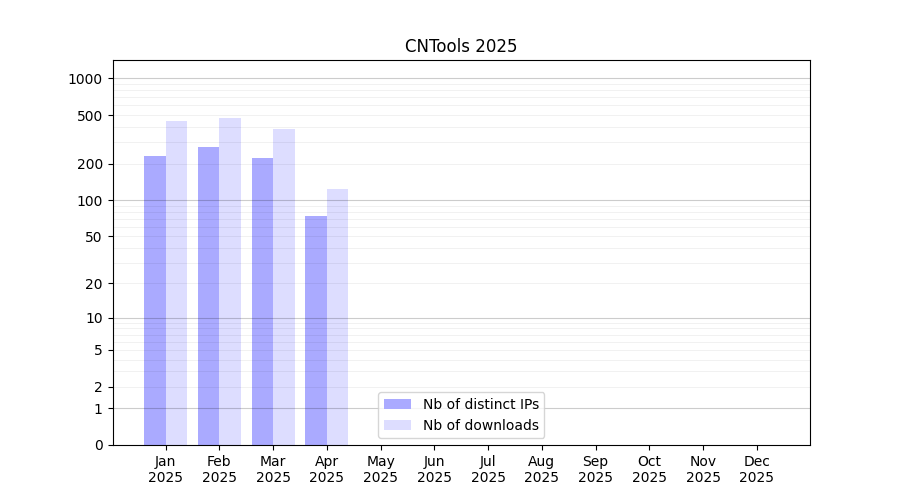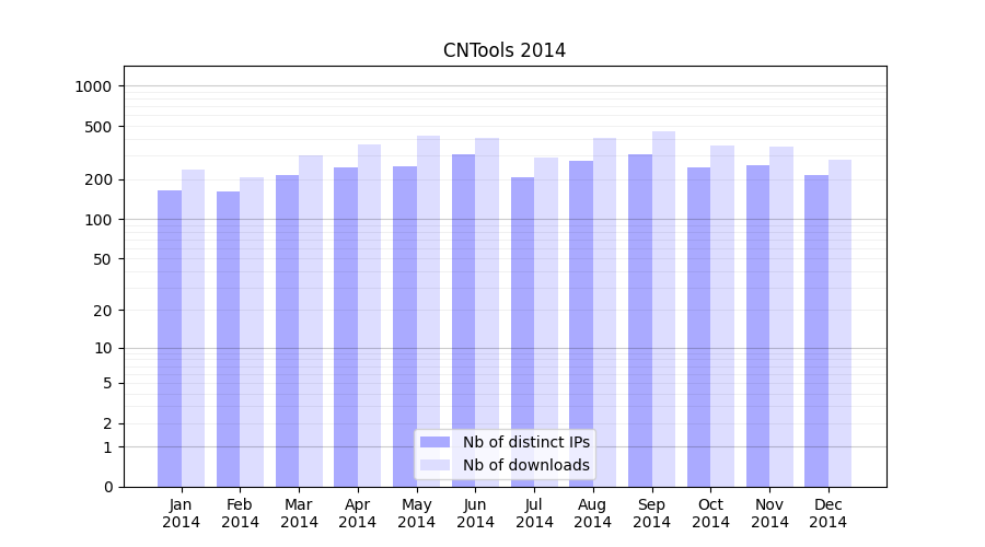 Number of downloads for software package CNTools, year by year, from 2025 back to 2014 (years with no downloads are omitted):