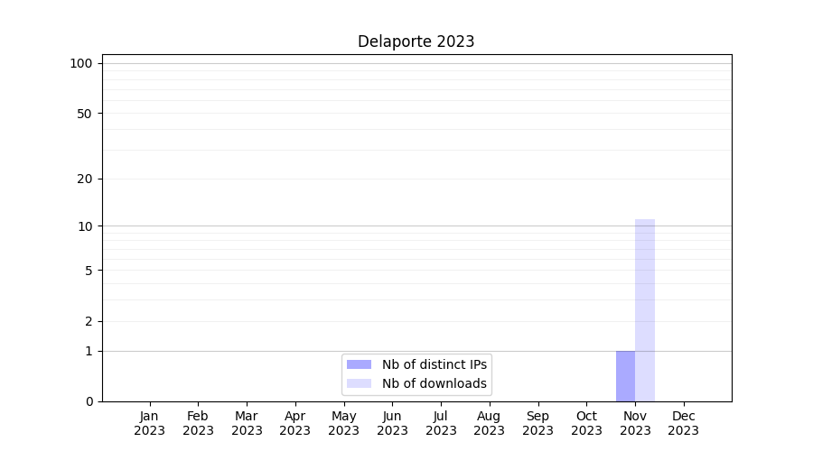 Number of downloads for software package Delaporte, year by year, from 2025 back to 2014 (years with no downloads are omitted):