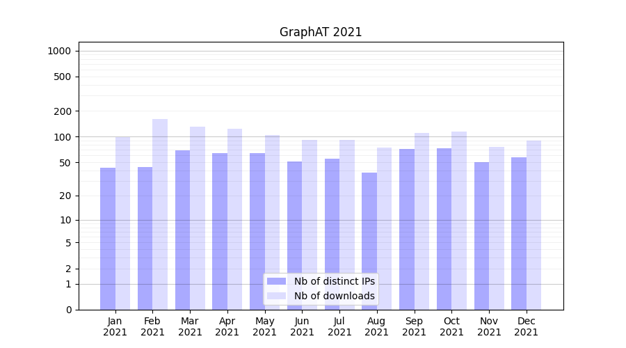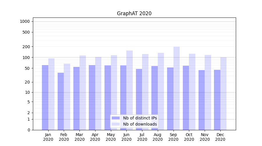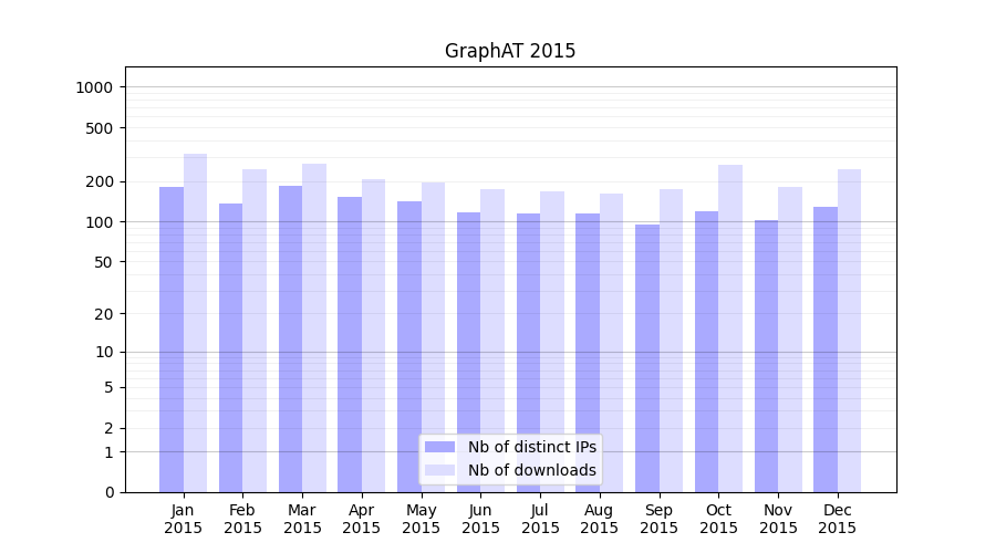 Number of downloads for software package GraphAT, year by year, from 2025 back to 2014 (years with no downloads are omitted):