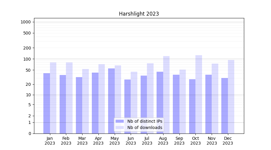 Number of downloads for software package Harshlight, year by year, from 2025 back to 2014 (years with no downloads are omitted):