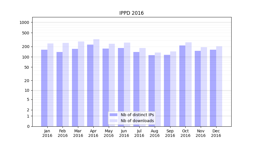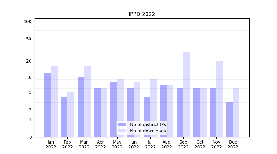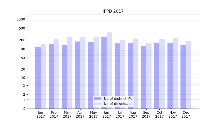 Number of downloads for software package IPPD, year by year, from 2025 back to 2014 (years with no downloads are omitted):