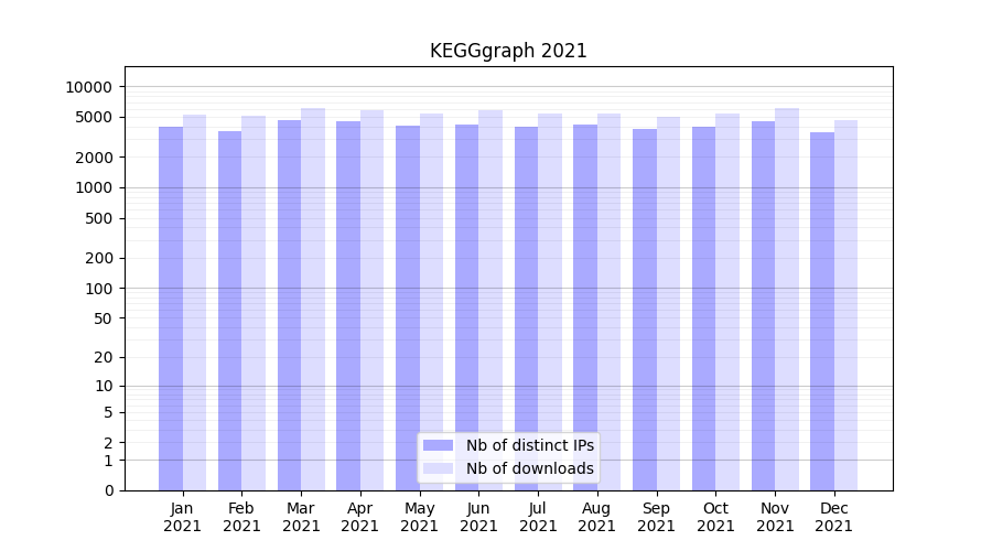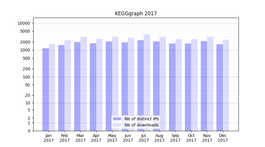 Number of downloads for software package KEGGgraph, year by year, from 2025 back to 2014 (years with no downloads are omitted):