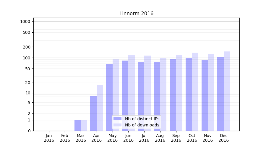 | Month | Nb of distinct IPs | Nb of downloads |