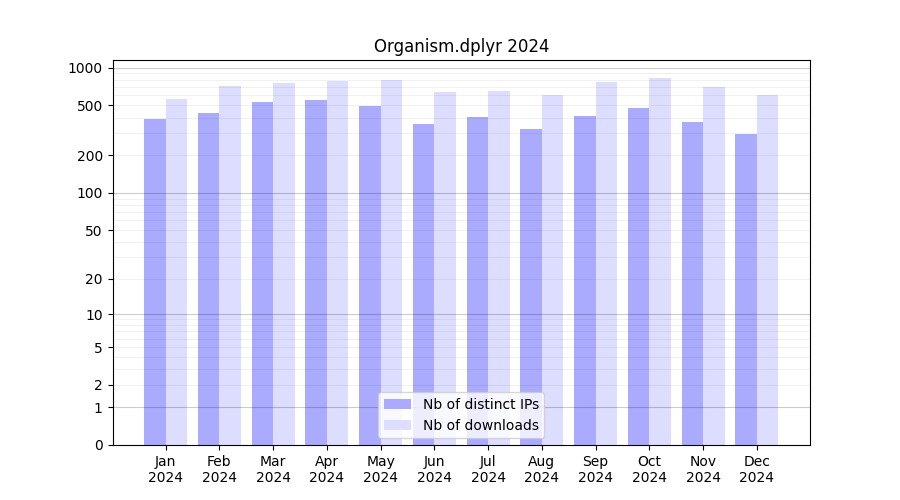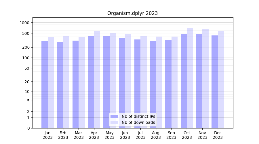 Download stats for software package Organism.dplyr