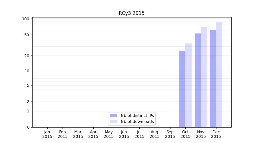 | Month | Nb of distinct IPs | Nb of downloads |
