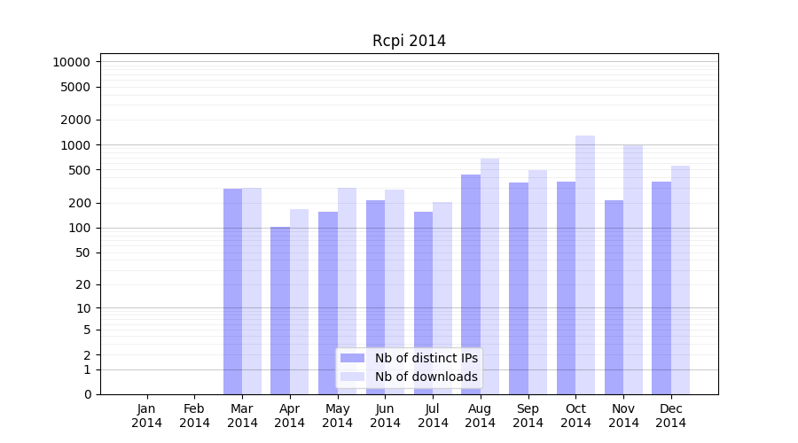 | Month | Nb of distinct IPs | Nb of downloads |