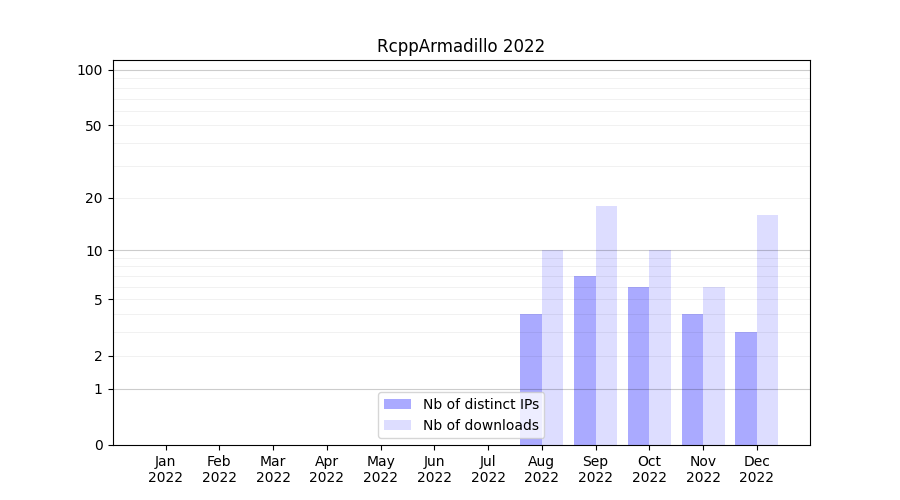 Download stats for software package RcppArmadillo