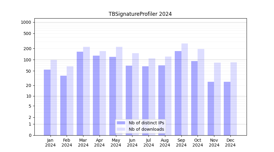 | Month | Nb of distinct IPs | Nb of downloads |