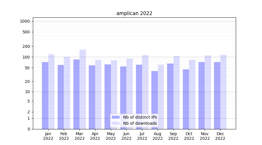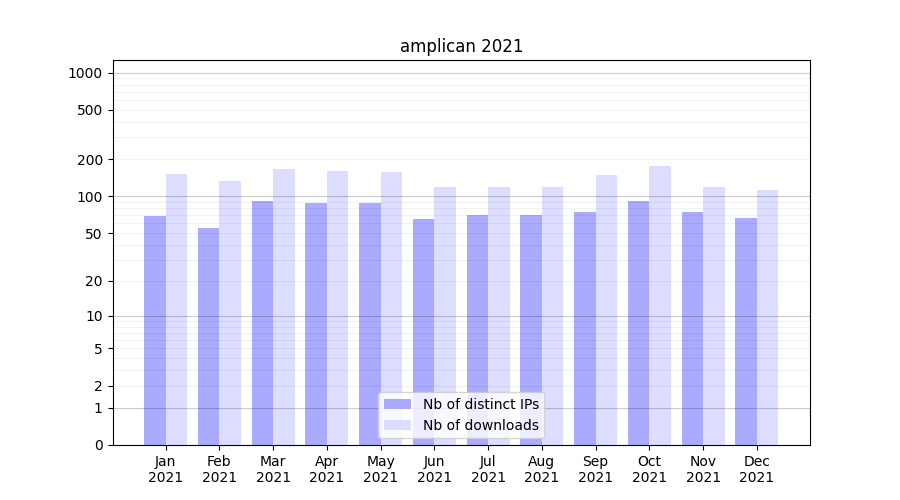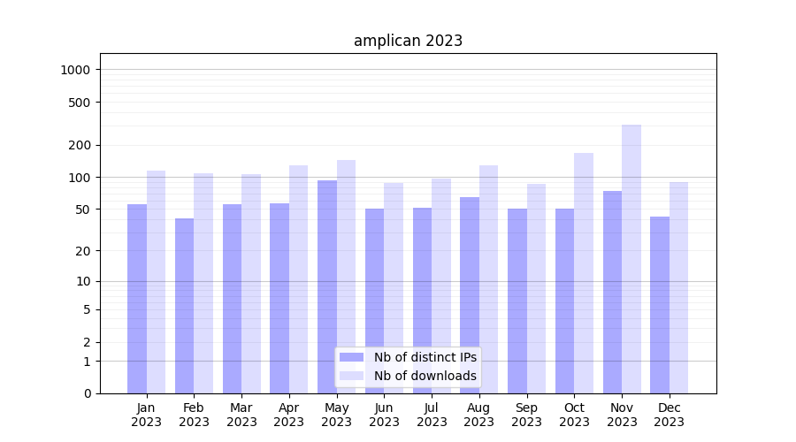 Number of downloads for software package amplican, year by year, from 2025 back to 2014 (years with no downloads are omitted):