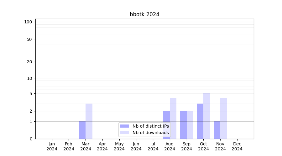 | Month | Nb of distinct IPs | Nb of downloads |