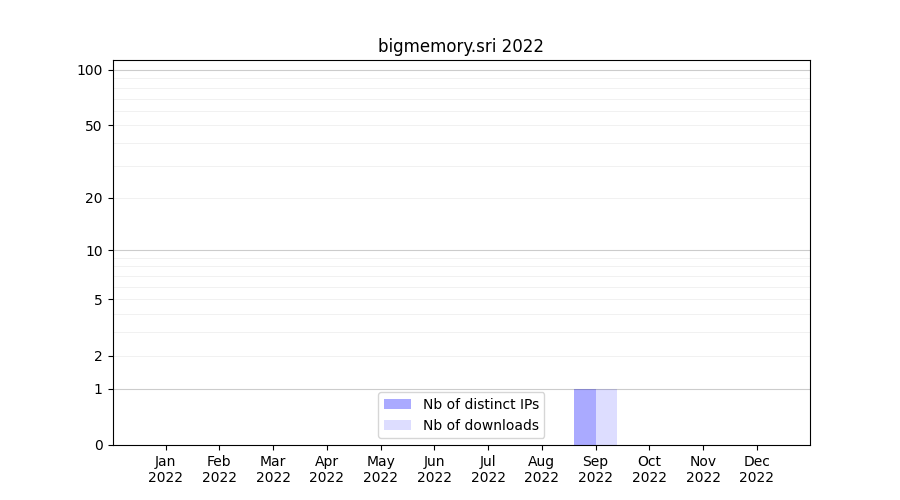 Number of downloads for software package bigmemory.sri, year by year, from 2025 back to 2014 (years with no downloads are omitted):