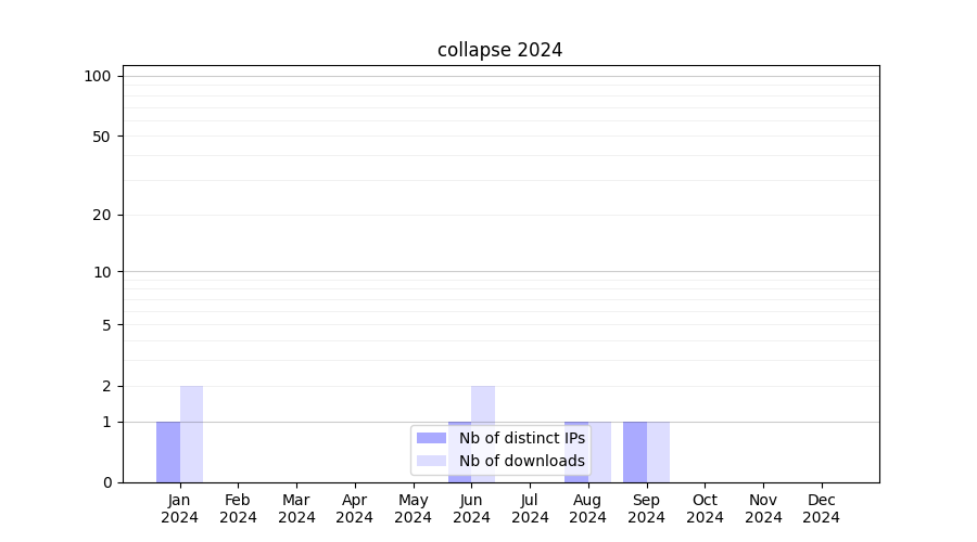 Number of downloads for software package collapse, year by year, from 2025 back to 2014 (years with no downloads are omitted):