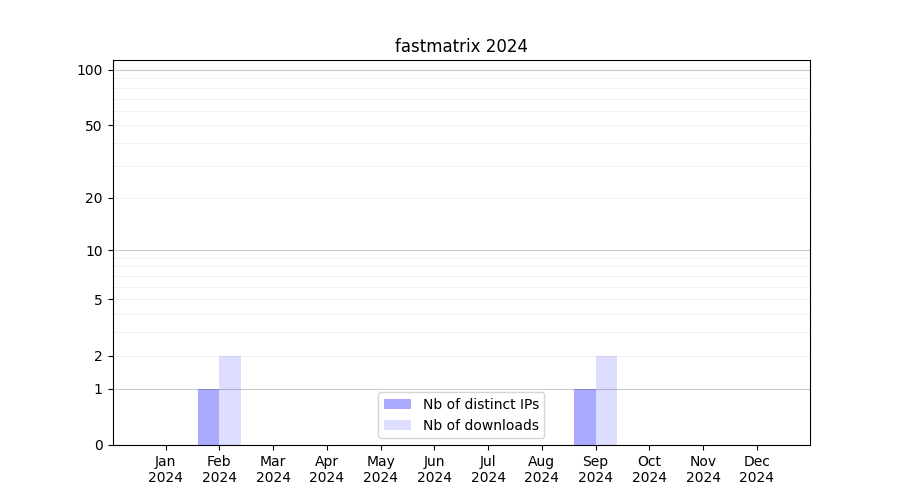 Number of downloads for software package fastmatrix, year by year, from 2025 back to 2014 (years with no downloads are omitted):