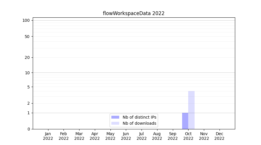 Number of downloads for software package flowWorkspaceData, year by year, from 2025 back to 2014 (years with no downloads are omitted):