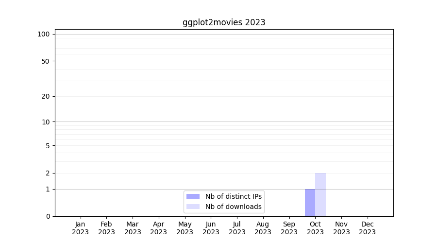 Number of downloads for software package ggplot2movies, year by year, from 2025 back to 2014 (years with no downloads are omitted):