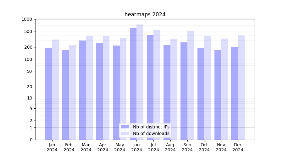 | Month | Nb of distinct IPs | Nb of downloads |