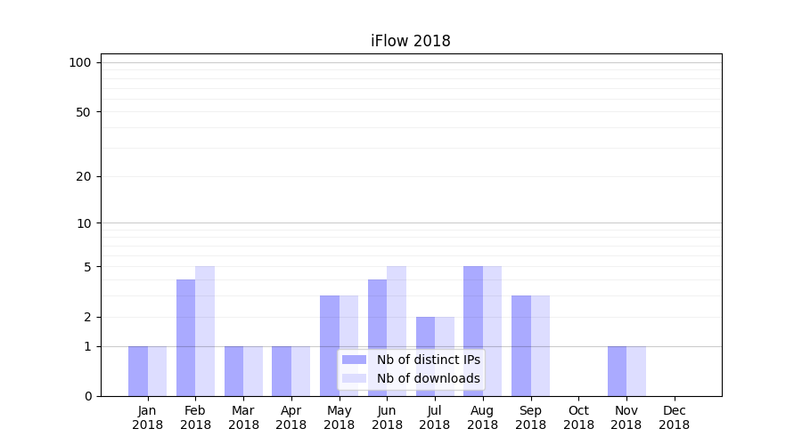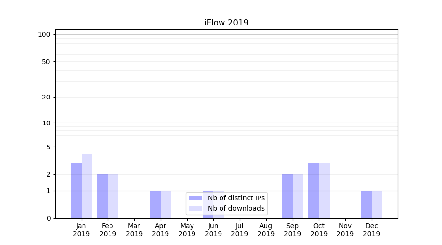 Number of downloads for software package iFlow, year by year, from 2025 back to 2014 (years with no downloads are omitted):