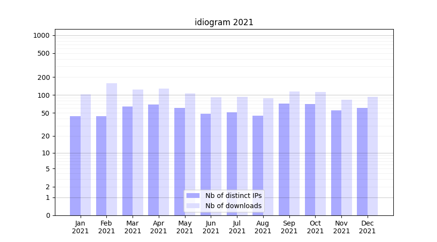 Number of downloads for software package idiogram, year by year, from 2025 back to 2014 (years with no downloads are omitted):