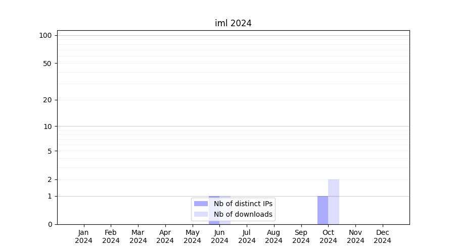Number of downloads for software package iml, year by year, from 2025 back to 2014 (years with no downloads are omitted):