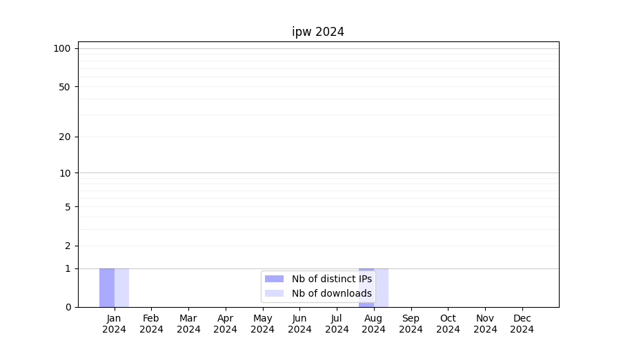 Number of downloads for software package ipw, year by year, from 2025 back to 2014 (years with no downloads are omitted):