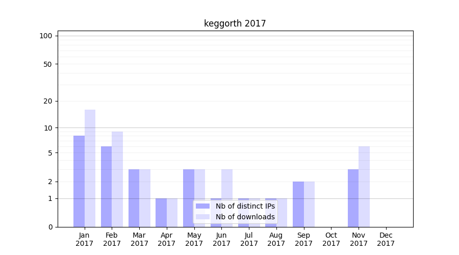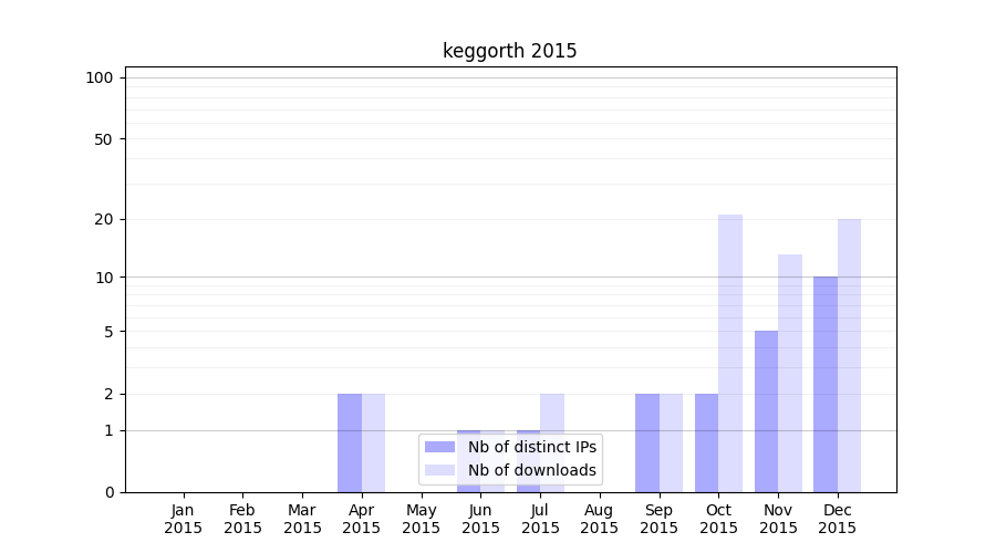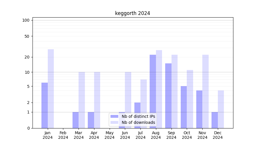 Number of downloads for software package keggorth, year by year, from 2025 back to 2014 (years with no downloads are omitted):