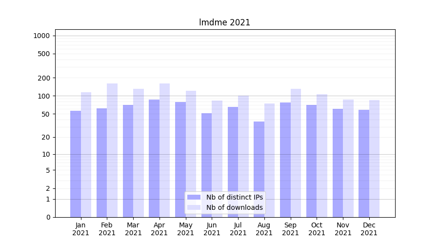 Number of downloads for software package lmdme, year by year, from 2025 back to 2014 (years with no downloads are omitted):