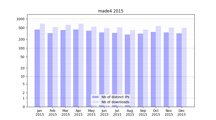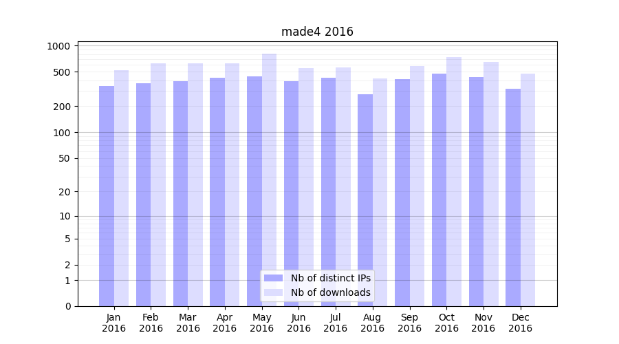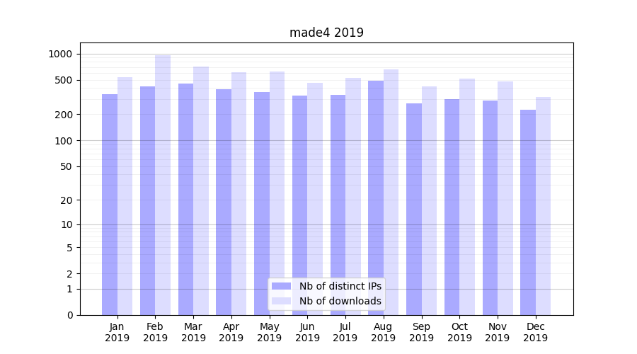 | Month | Nb of distinct IPs | Nb of downloads |