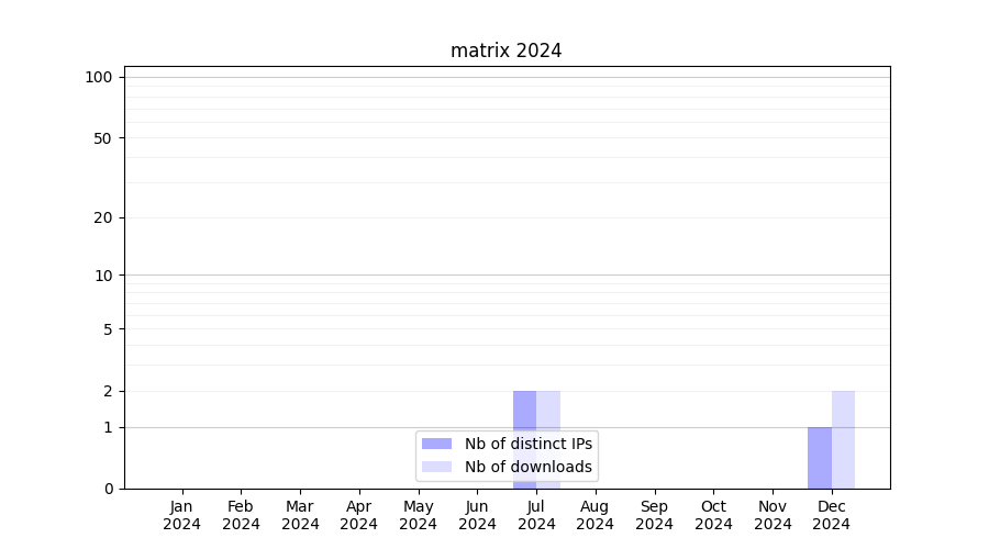 Number of downloads for software package matrix, year by year, from 2025 back to 2014 (years with no downloads are omitted):