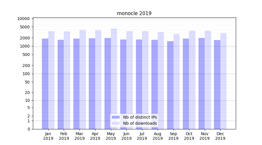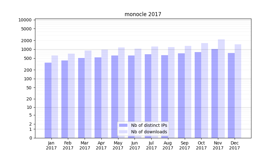 | Month | Nb of distinct IPs | Nb of downloads |