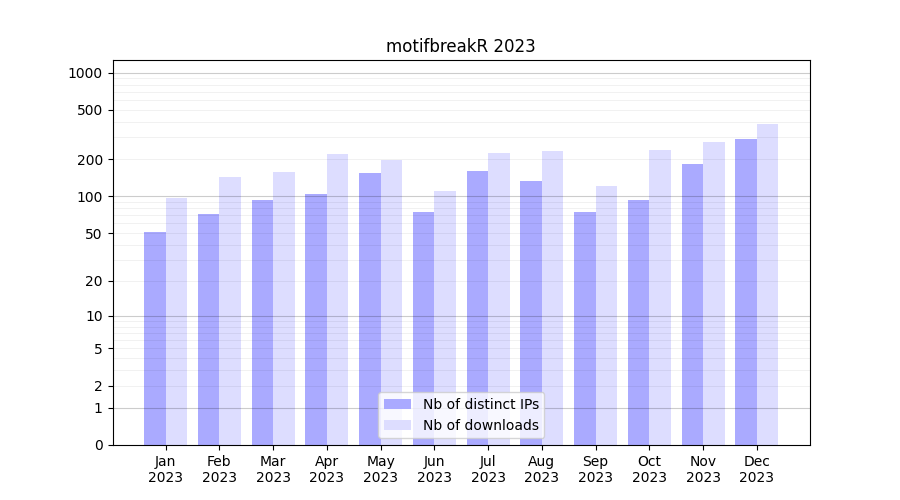 Download stats for software package motifbreakR