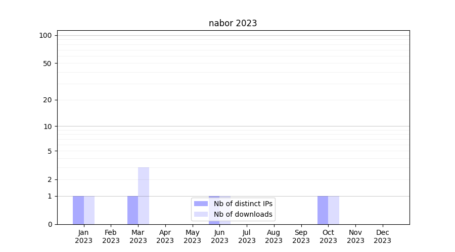 Number of downloads for software package nabor, year by year, from 2025 back to 2014 (years with no downloads are omitted):