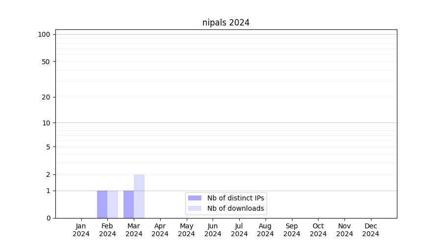 Number of downloads for software package nipals, year by year, from 2025 back to 2014 (years with no downloads are omitted):