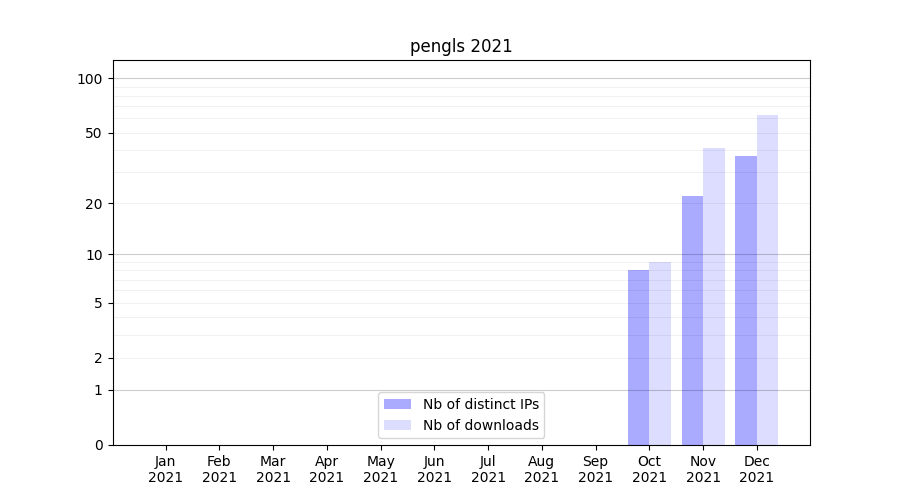 Number of downloads for software package pengls, year by year, from 2025 back to 2014 (years with no downloads are omitted):